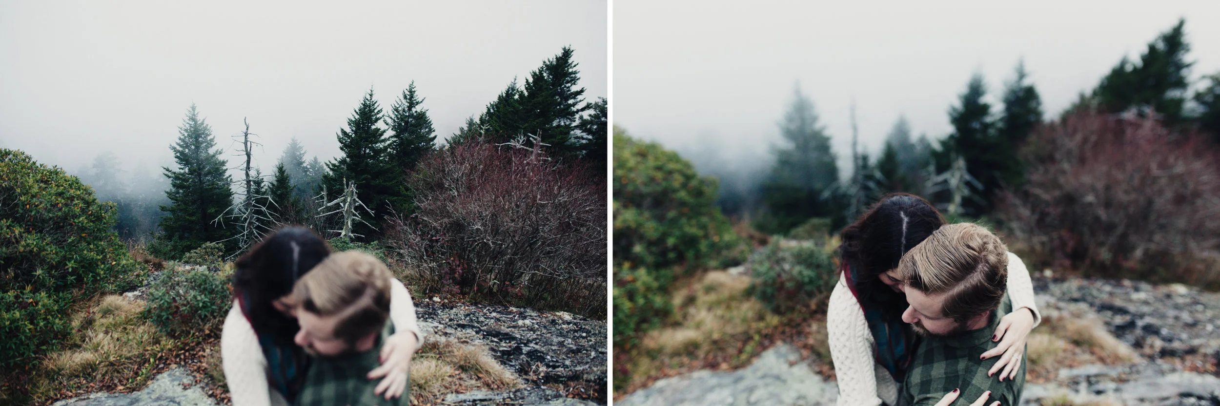 Ben & Chelsea - We hiked what felt like an eternity & took the wrong trail at that. But that didn't stop us from taking pauses along the way & awing at how awesome going the wrong direction can be sometimes. We came to a scenic overview covered by fog & they remained indifferent. These two are so down to earth & knew from the start that they are exactly what the other had in mind when it came to forever. Basically, I tagged along & let them do their thing. Thanks for inviting me on the good time, guys! Can't wait to witness these two seal the deal next March in those gorgeous Asheville mountains.