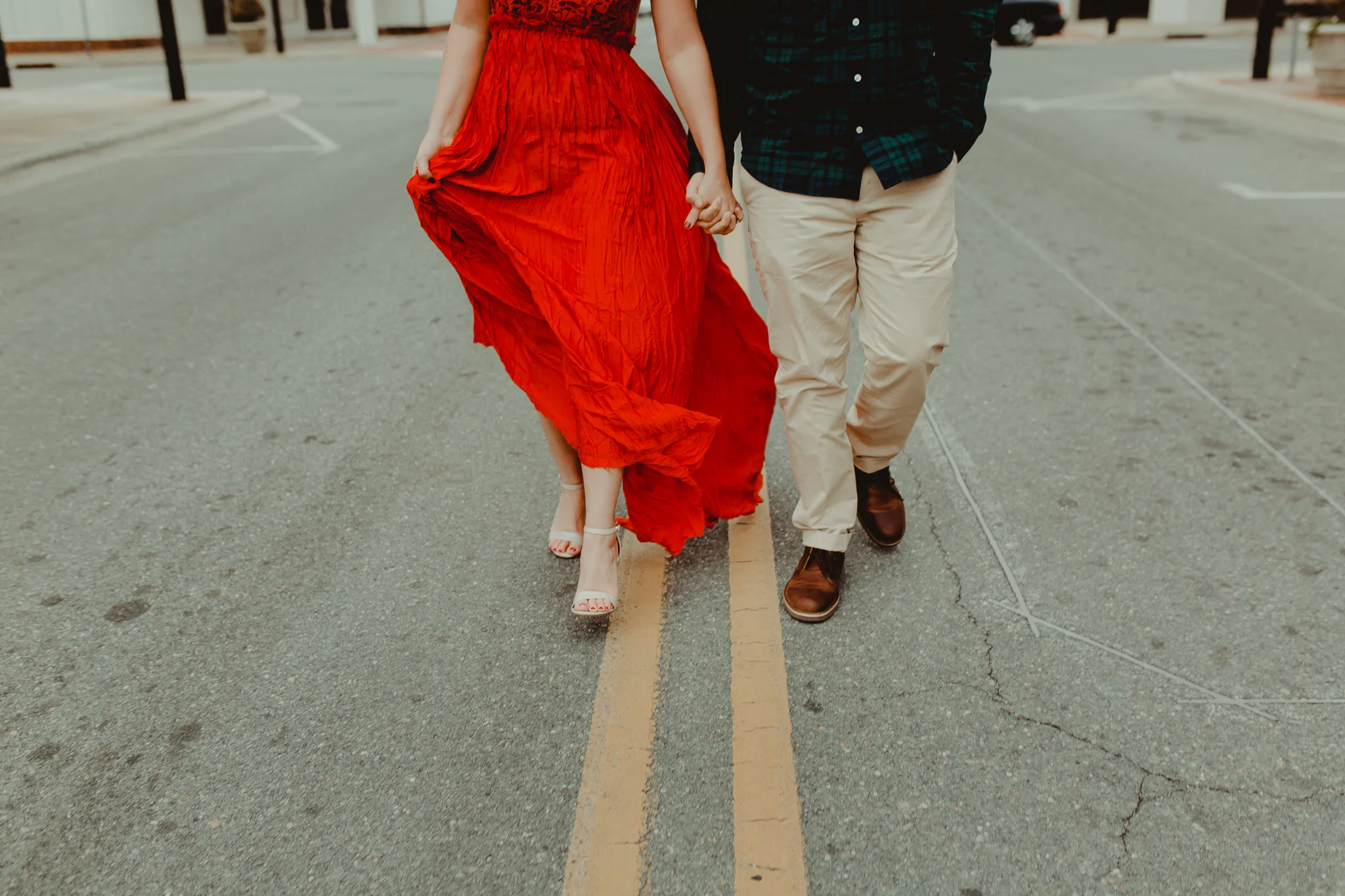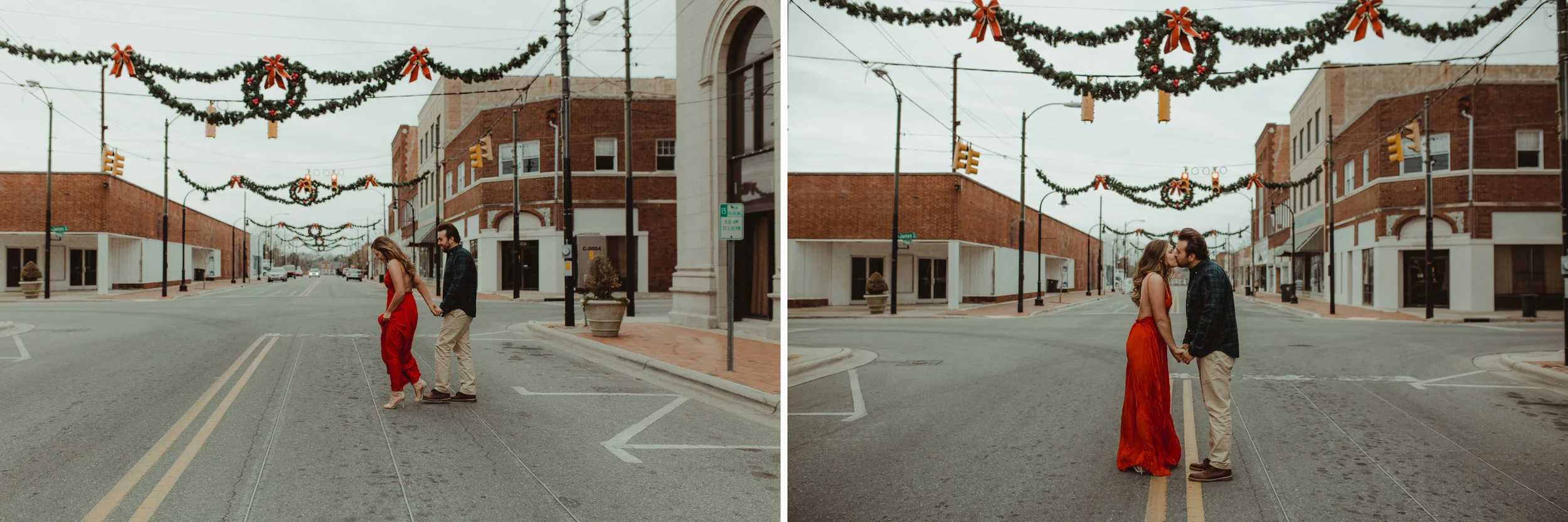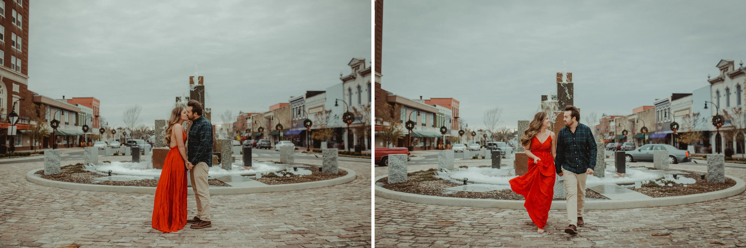 I seriously could rave on & on about these two sweethearts. We had no idea that the weather on this day would drop below freezing, but that didn't stop Whit from rocking that AH-MAZ-ING red dress in downtown, Goldsboro. MY KIND OF GIRL ;) We were moving so fast to try & beat the cold weather & I'm so thankful that it was these two to embrace the cold with. Their chemistry is very apparent & I truly did minimal work here. They cuddled up, laughing & sharing secrets like the sweetness they truly are. I can't wait to share their special day next September AND in much warmer conditions.